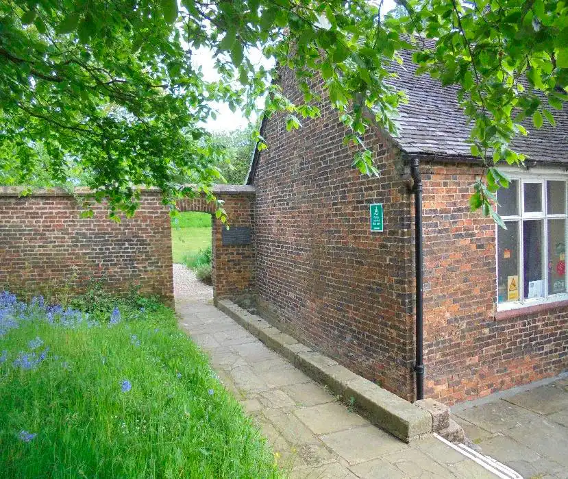 There are two entry points, the first is at the back gate with steps over the Hall’s flood defences with a gentle path leading to the Halls rear onto a crazy paved area. Head across this area and enter the Reception / tea room.