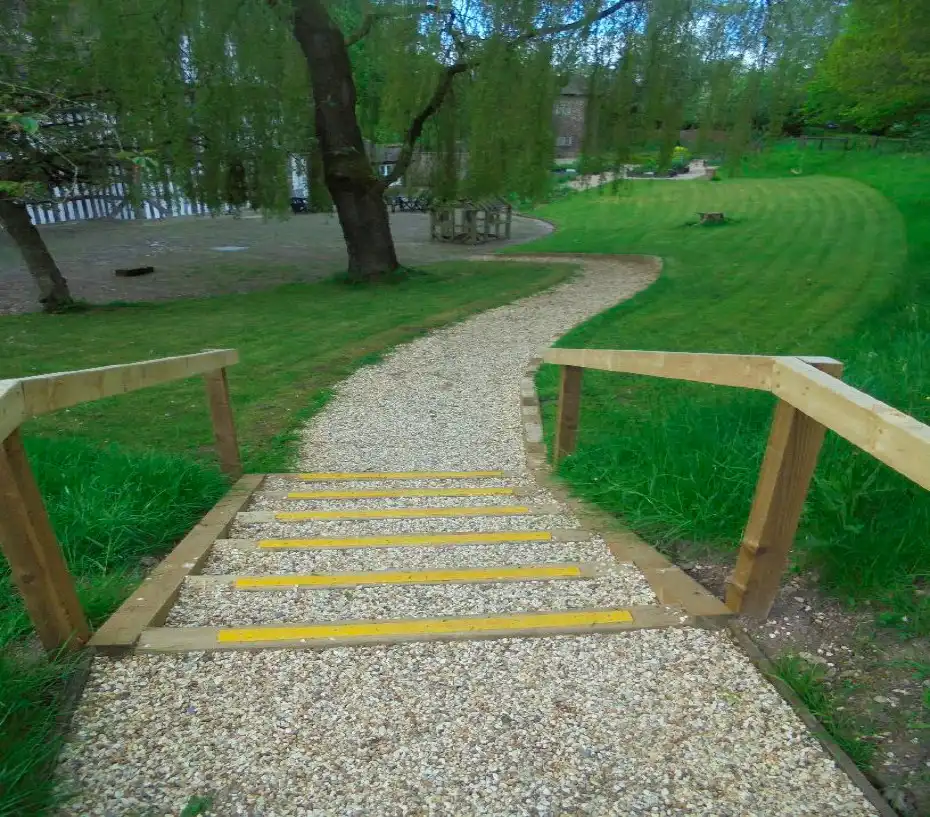 Our garden is accessible without steps, but there are steps with handrails leading to our viewing mound. Most of the garden has a gentle slope and is gravelled.